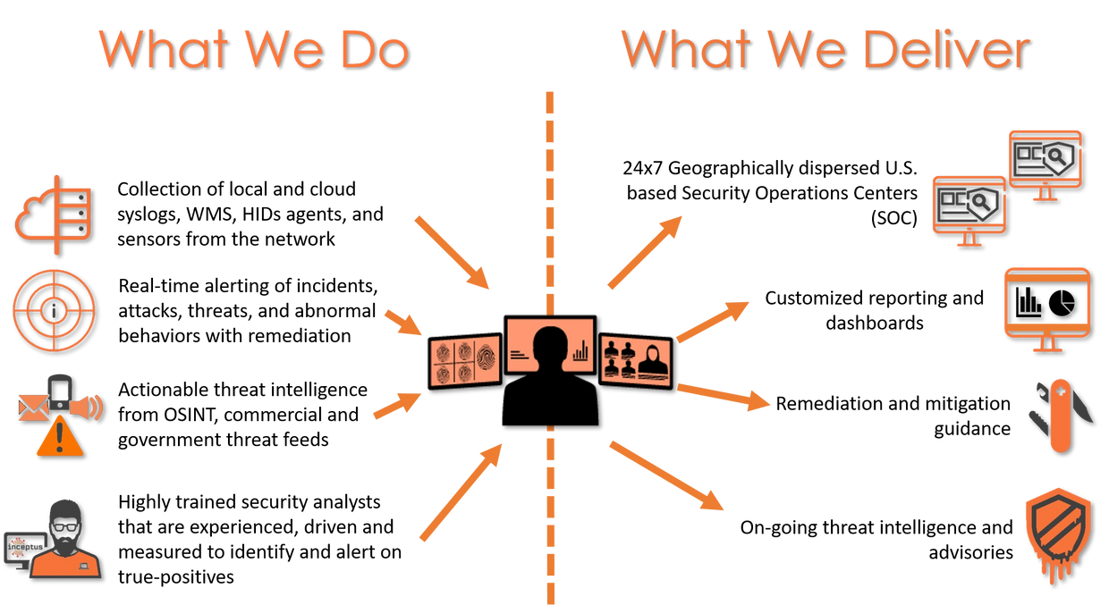 Automated analysis only goes so far, that’s why Inceptus provides round-the-clock Security Analysts to determine what is a harmless anomaly and what is a real threat.